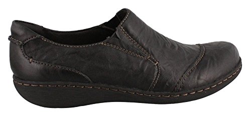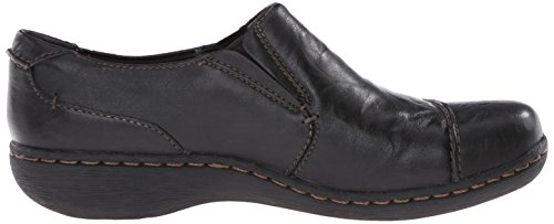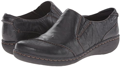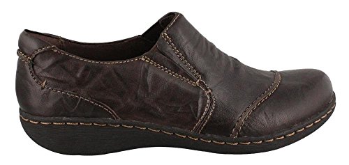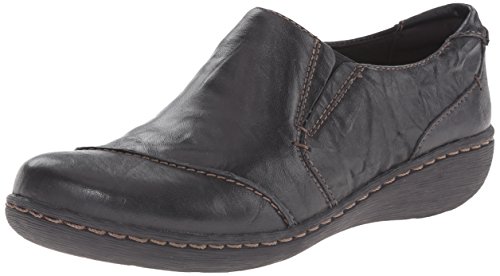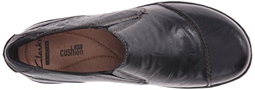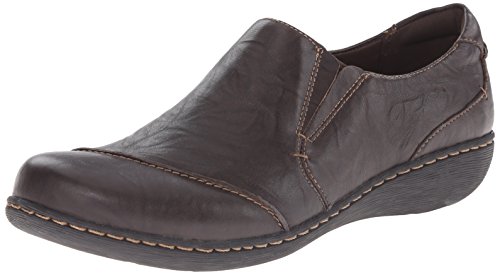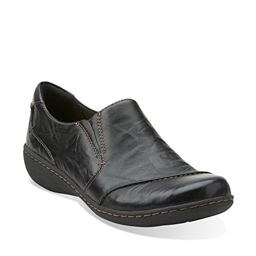 Women's Clarks, Fianna Carlie Slip on Shoe Enjoy this easy going style for Clarks! Leather upper Slip on style with dual elastic goring panels for an easy on and off Fabric lining Ortholite cushioned footbed for added comfort 3/4 inch heel Rubber outsole. Heel Height of 0.75 inchesFeature