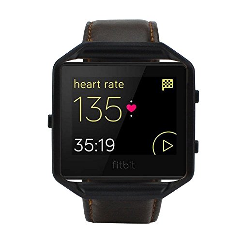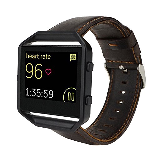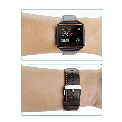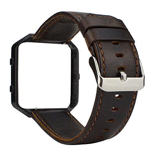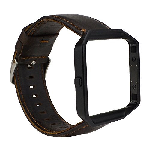 Coffee Leather Band with Black Frame. Compatible with Fitbit Blaze Fitness Smart Watch ONLY. For the size of wrist: 16cm - 22.5cm (6.3inch - 8.8inch). Width: 22mm. Note: People with sensitive skin (leather allergy) should use it with caution