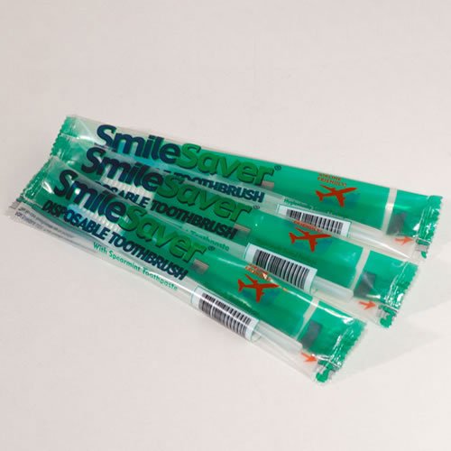 -. Feature : 5 x SmileSaver Disposable Travel Toothbrush / No water required / Fresh minty flavour / Individually wrapped and hygienically sealed / 100% recyclable