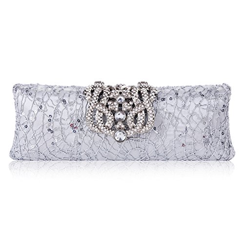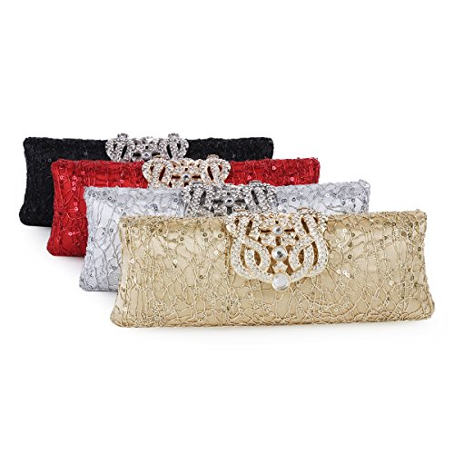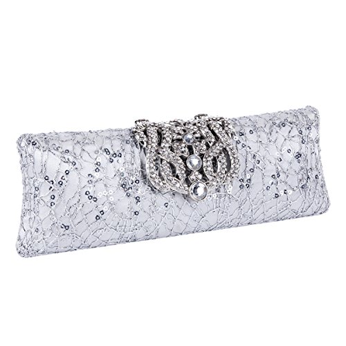 Damara Womens Rhinestone Folded Snap Sequin Clutch Party Bag