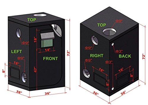 -. Title : TopoLite 24"x24"x48" 48"x24"x60" 48"x48"x78" 600D Grow Tent Room Reflective Mylar Indoor Garden Growing Room Hydroponic System (36"x36"x72" w/ window)
