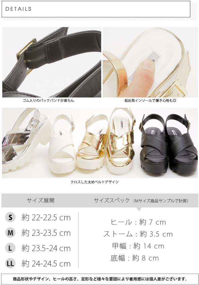 | サイズ | Sサイズ(22.0~22.5cm) Mサイズ(23.0~23.5cm) Lサイズ(23.5~24.0cm) LLサイズ(24.0~24.5cm) |