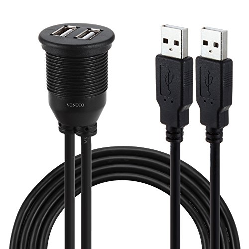 VONOTO 1M 3 Feet USBCBL 2 USB to 2 USB AUX Flush Mount Dash Extension Cable with Dash Mounting Bracket for Car Motorcycle Boat Bike Trailer dash or other surface (2 USB to 2 USB)