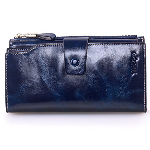 BIG SALE-Yafeige Women's Large Capacity Luxury Wax Genuine Leather Clutch Wallet Multi Card Organizer Ladies Purse