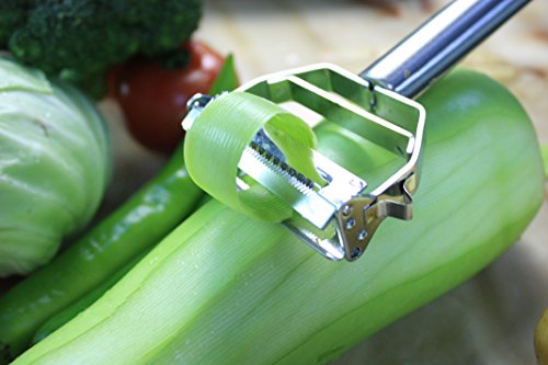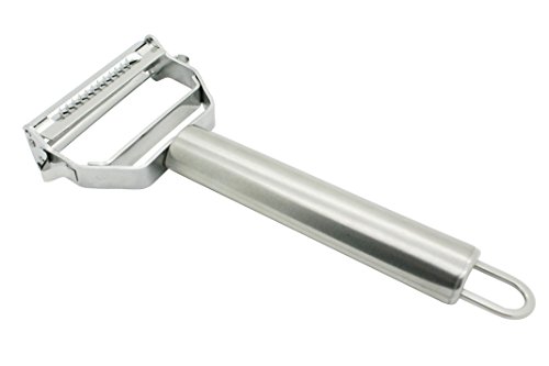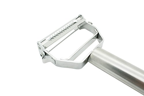 - Feature : ULTRA SHARP: This dual julienne peeler & fruit/vegetable peeler's s blade is the sharpest one you will have ever experienced, made of top quality stainless steel blades, making peeling vegetables an absolute breeze. It cuts through aubergines, carrots and butternut squash like a hot knife through butter. With this sharpest blades on the market, and a pro chef inspired design, you'll be making beautiful meals in a fraction of the time / VERY COMFORTABLE: This stylish, original, unique, and exclusively designed premium Julienne peeler and Vegetable peeler is very comfortable to hold and use. It is not only fits perfectly with any kitchen décor, but also makes everyday cooking easy and fun. It is one more opportunity to express yourself! / FUNCTION: Peeling , julienne cutting , shredding , slicing , removing potato eyes and so on. Use it for potatoes, carrots, cucumbers, parsnip, apples, onions, zucchini, cabbage and much more vegetables and fruits / GREAT AS A GIFT: Whether you are a professional culinary chef or just looking for a gift for your friends or mom (Mother's Day, hint hint*) adding this peeler to your home kitchen tools is sure to elevate your talents in the kitchen / MUST-HAVE KITCHEN TOOL: When you have your julienne peeler, you'll be able to make amazing low carb zucchini spaghetti with ease. Throw in some julienne carrots and some butternut squash and you can make a number of amazingly tasty, colourful and vibrant dishes in mere minutes
