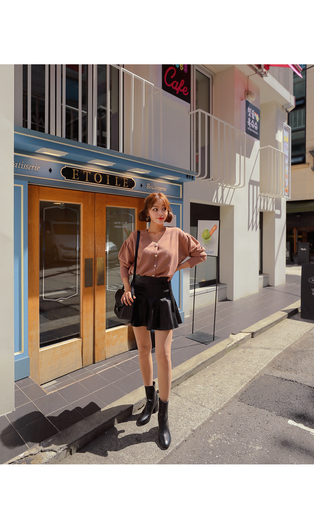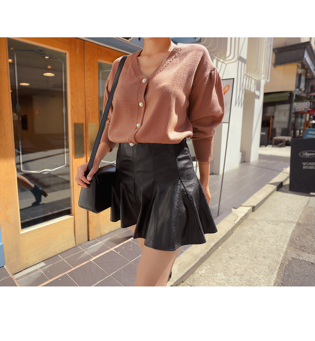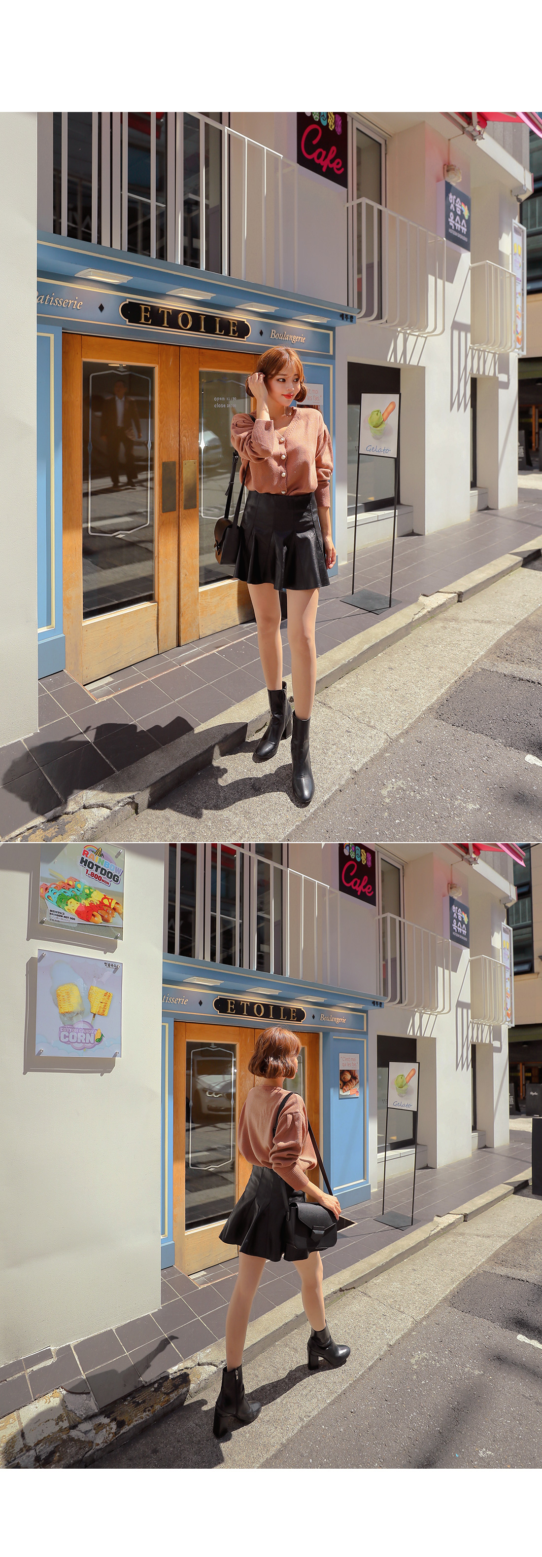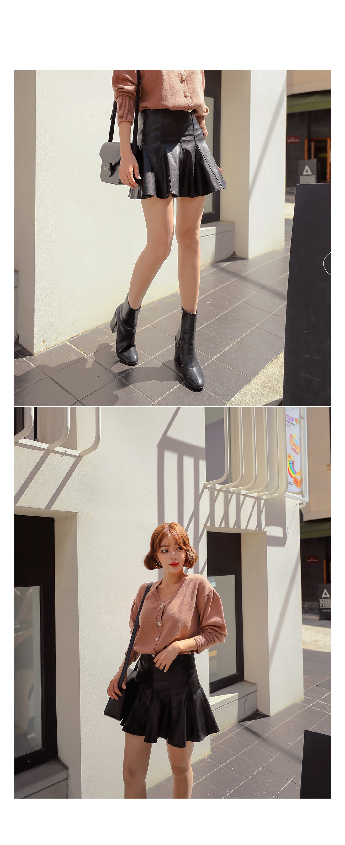 봄,가을,겨울 꾸준히 활용하기 좋은 레더 소재감으로