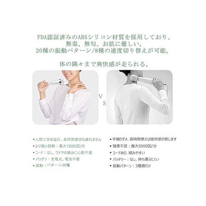 원본상품명: Lovesecret ハンディマッサジャ 電動マッサジ器 小型 13000回/分 20種振動パタン ダイエット 肩たたき 二の腕 健康 療用シリコン素材 コドレス 日本語取扱明書付き ホ