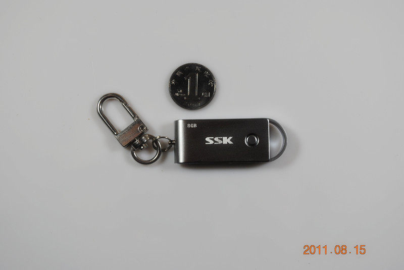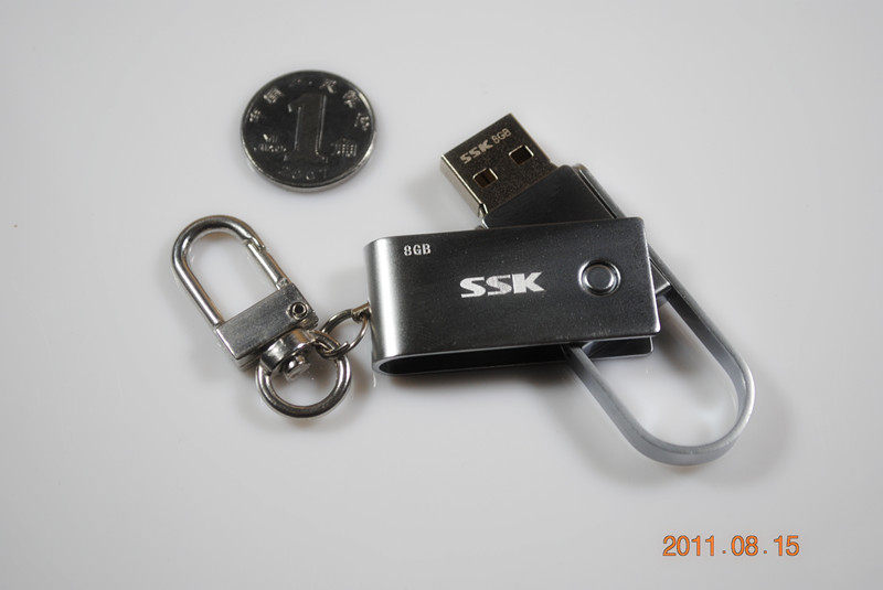 外壳采用全金属外壳打造而成,有人说它很像一把锁,形容倒也十分贴切,在优盘尾部有钥匙扣,可以方便挂在钥匙链或者手机链上。