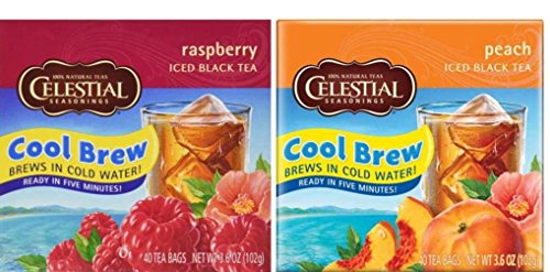 Title : Celestial Seasonings Cool Brew Iced Black Tea 2 Flavor Variety Bundle: (1) Celestial Seasonings Raspberry, and (1) Celestial Seasonings Peach, 3.6 Oz. (40 Count) Ea.
