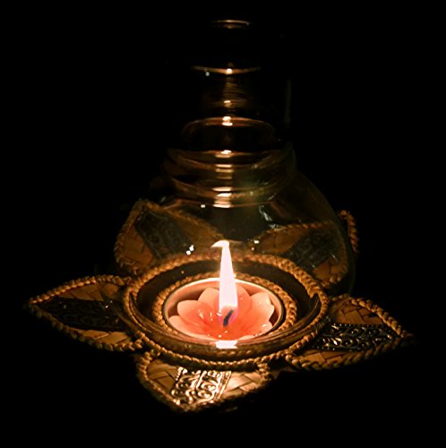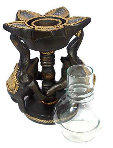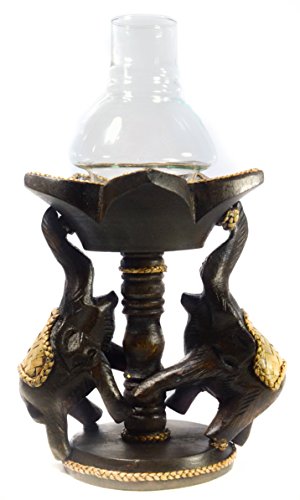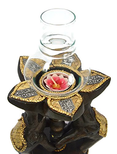 Thai Elephants Candle Holder Wood Carved Lotus Flower with Glass Dining Room Spa Restaurant Decor Antique Style