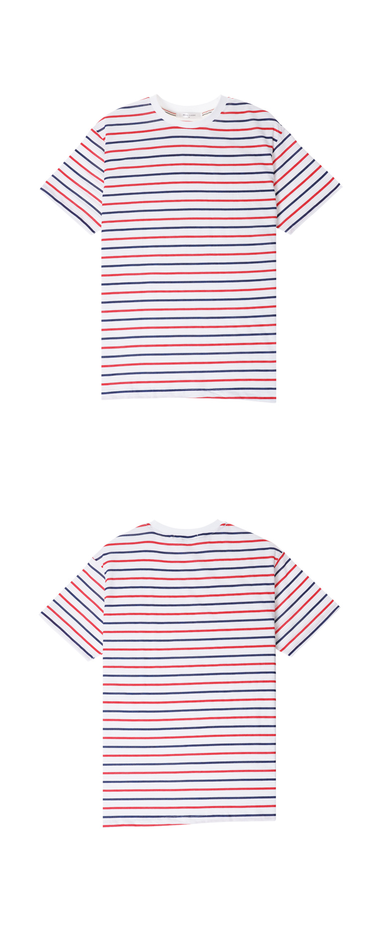 투톤스트라이프 반팔티셔츠 시원한 컬러감의 멀티컬러 핀스트라이프 반팔티셔츠입니다. 원단감을 살리고 변형률을 최소화하기 위해 30수 싱글원단을 덤블워싱 가공처리해서 제작했습니다. 은은한 톤의 투톤 핀스트라이프 패턴으로 은은하고 시원한 컬러감이 매력적입니다. 살짝 루즈한 핏감으로 여름철 숏팬츠나 데님팬츠 등과 캐주얼하게 코디하기 좋은 반팔티셔츠입니다.