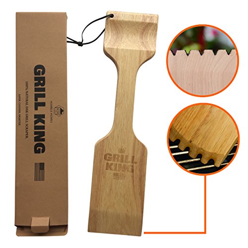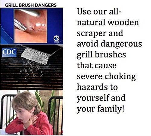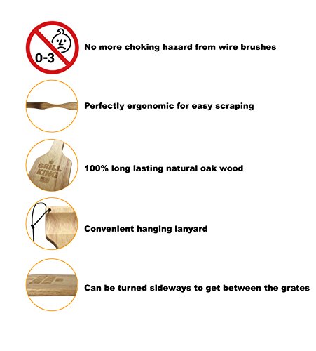 MORE EFFECTIVE – The natural oak wood conforms to the unique ridges in your grill on your first use and gets deep between the grills. The more you use your scraper the better the more effective your scraper becomes. The long, ergonomic wooden handle keeps you a safe distance from heat – Length? Also use your wood scraper to effectively oil your grill.
