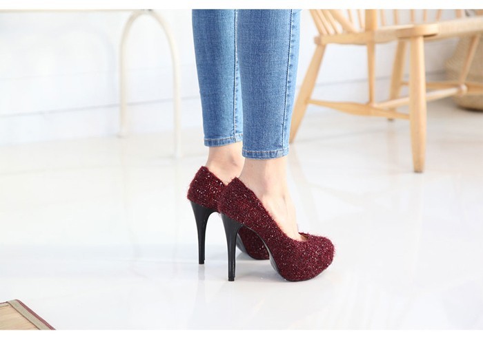商品名:パンプス レディース ピンヒール 起毛 キラキラ 2017 秋 冬 ファッション 靴 婦人靴