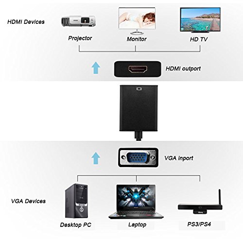 VGA to HDMI adapter convert VGA output to your HDMI compatible HD TV, monitor or projector for a mirror screen or a extension window.