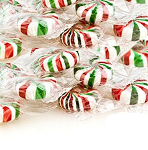 A holiday twist to the starlight mint, with red, white, and green stripes. Made with natural peppermint oil. Perfect for displaying in a Christmas candy dish. Keep some and give some to a friend, neighbor or teacher!