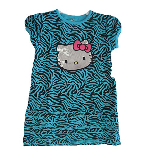 A cute turquoise zebra patterned dress from Hello Kitty for your little girl. Showing that modern edge the dress has short sleeves and a sparkle sequin Kitty applique. The zebra pattern gives the dress a trendy flair.Feature