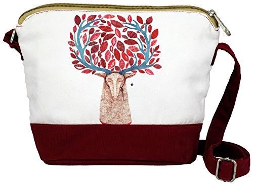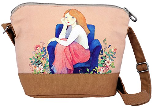 Crest Design Women / Girl Canvas Cross Body Bag / Shoulder Bag / Handbag (Bisque)