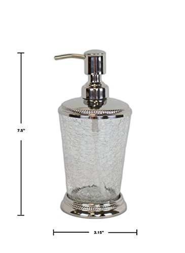 Ava – Style comes home - Refillable Lotion Pump / Soap Dispenser - for Bathroom or Kitchen Countertops – New Crackle Rope Collection - Stainless Steel and Crackle Glass Finish