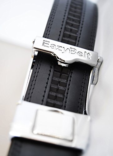 - Feature : No more holes! Eazy adjustable 32-Position Track System for a perfect, comfortable fit - anytime and anywhere! / New, Unique Ratchet System - smoother-flowing, lighter, and sleeker in comparison to the conventional magnetic ratchet system that exists on most ratchet belts in the market today. / Extra Durable - Genuine leather belt (width: 35 mm/1-3/8 in) and high quality Zinc Alloy buckle coated with chrome that will lasts for years! / Highly Flexible - Removable buckles for eazy changing between belt colors to match your daily style. / Order with Confidence - The EazyBelt Guarantee: 45 days return policy, plus 180 days warranty on the buckle!