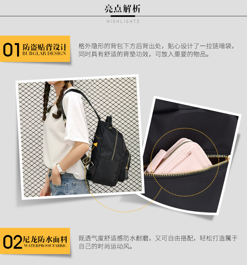 新款个性简约潮百搭牛津帆布双肩包女包韩版时尚尼龙妈咪背包