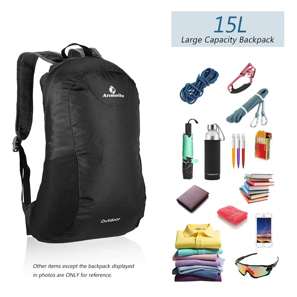 This 15L backpack features a padded sleeve designed to separate stuffs, side pouches to hold water bottles, umbrellas, keys, etc. It is specially designed to fold into a small pack of a easy-to-carry bag. Take it with you in your suitcase while travelling, take it while backpack, hiking, cycling, adding no extra burden to your trips!