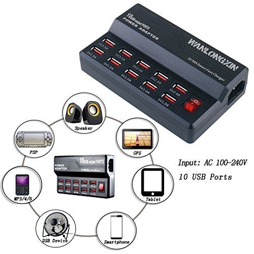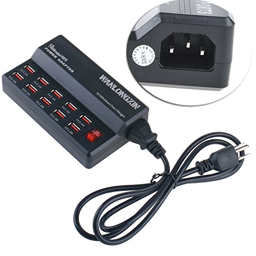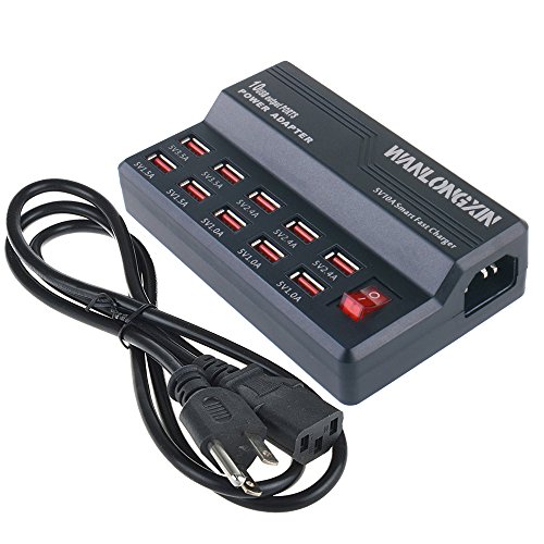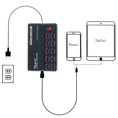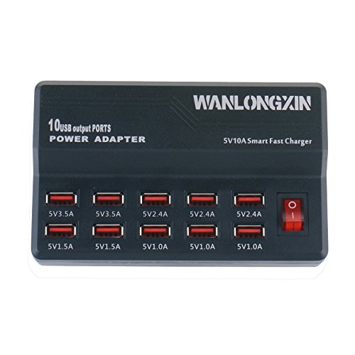 WANLONGXIN 838L 10 Port Family-Sized Desktop USB Rapid Charger Output Compatible with Auto Detect Technology for iPhone 6s 6 5s, iPad Air mini, Samsung, LG, HTC, Nexus, Cellphone