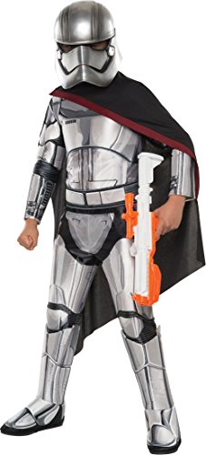 Value priced Captain Phasma costume includes a printed jumpsuit with attached boot covers, cape, and mask. The epic saga of the galaxy far, far away returns and you can join the fun! Officially licensed, The Force Awakens costumes and accessories for Captain Phasma, Rey, Kylo Ren, Flametroopers, and Stormtroopers were created by Rubie's Costume Company in partnership with LucasFilms. Children's sizes are offered in Small, Medium, and Large. Small is designed to fit most 3 to 4 year olds, 44 to 48-inches tall with a 25 to 26-inch waist, and 27 to 28-inch chest/hips. Medium is designed to fit most 5 to 7 year olds, 50 to 54-inches tall with a 27 to 30-inch waist, and 29 to 32-inch chest/hips. Large is designed to fit most 8 to 10 year olds, 56 to 60-inches tall with a 31 to 34-inch waist, and 35 to 39-inch chest/hips. Sizes are approximate, most costumes are not designed to a clothing size standard; some adjustment may be needed. Rubie's is the world's costume leader and they take seriously the mission to make dressing up fun! Mascots, rental quality costumes, masks, wigs, accessories, and shoes can all be found under one of the Rubie's brand. Still family-owned and family-focused, Rubie's brings you fun for every season.Feature