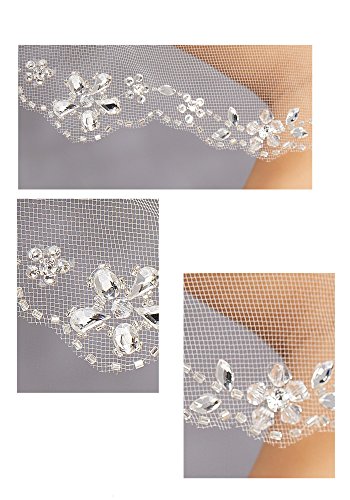 (Gogh)/Accessories/Scarves/DIRECT FROM USA/Gogh 3 Colors Single-Tier 36" Fingertip Heavily Beaded Wedding Veil with Floral Rhinestone Desi...