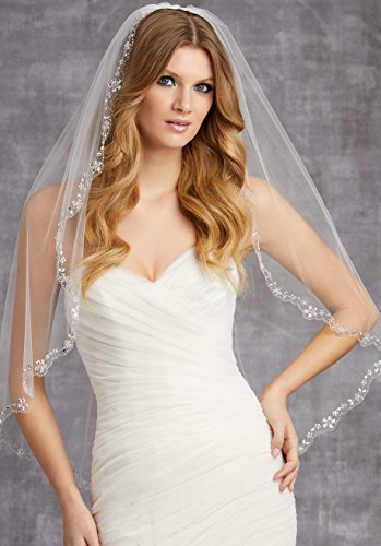 Picture yourself walking down the aisle dressed to the nines in your wedding outfit that took months of planning to complete. To experience a wedding ceremony that you will remember for the rest of your life, you must have a complete outfit right? Well having a veil is not only customary to compliment the wedding dress, but also completes the setting of a well-planned marriage ceremony. This beautiful wedding veil suits all brides well. This veil is easy to attach to the hair through a metal comb so it won't add trouble to any of the preparation plans already set in stone. So why not give yourself an aura of grandeur on your big day? This veil completes the look that you are looking for on the biggest day of your life.