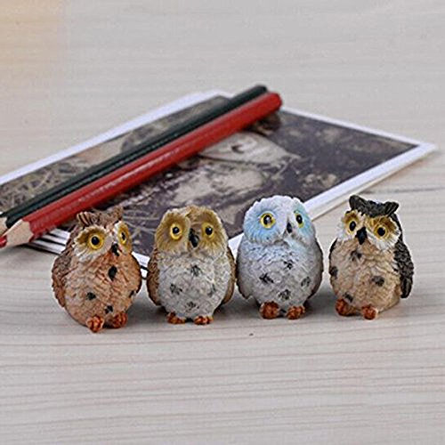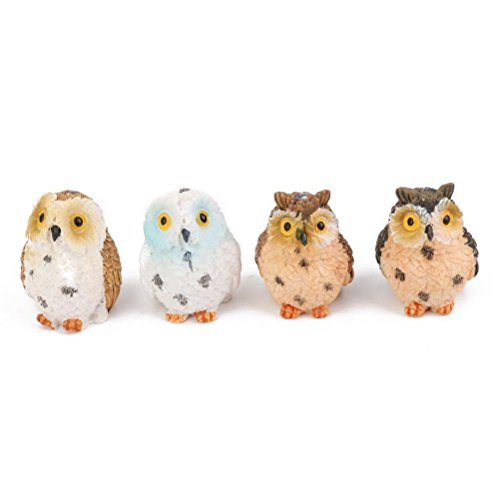 Miniature Fairy Garden Owl Ornament Kit - Hand Painted Figurine Statues Accessories - Set of 4pcs for Home Outdoor Lawn Decor