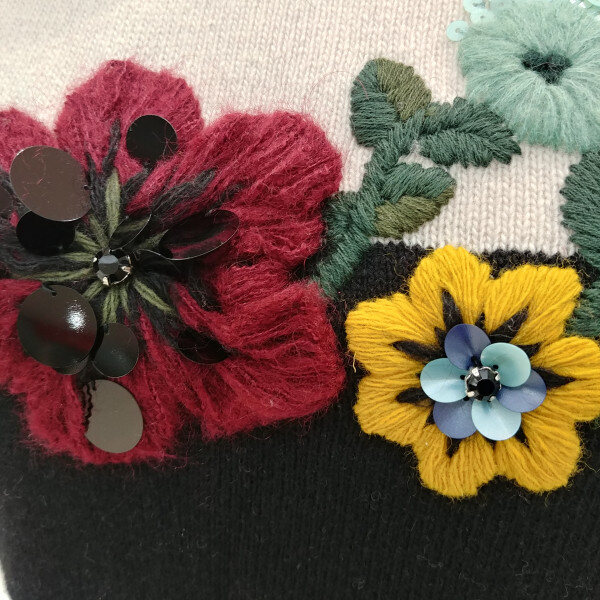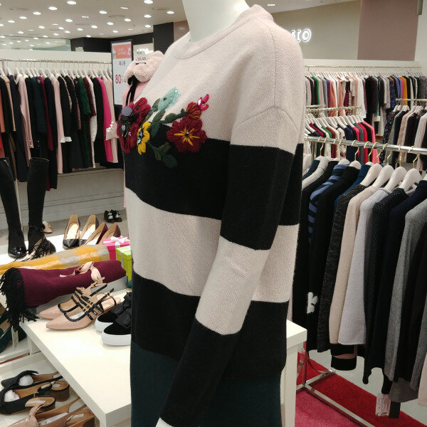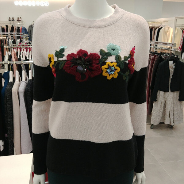 스트라이프에 손자수 꽃모티브가 포인트인 니트입니당 ♥♥♥