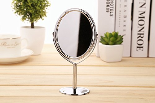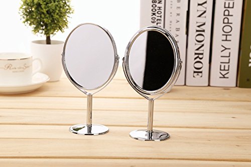 Adecco LLC Mini Stainless Steel Two-Sided 2X Magnification Personal Portable Makeup Mirror Swivel Round Facial Mirror (oval mirror)