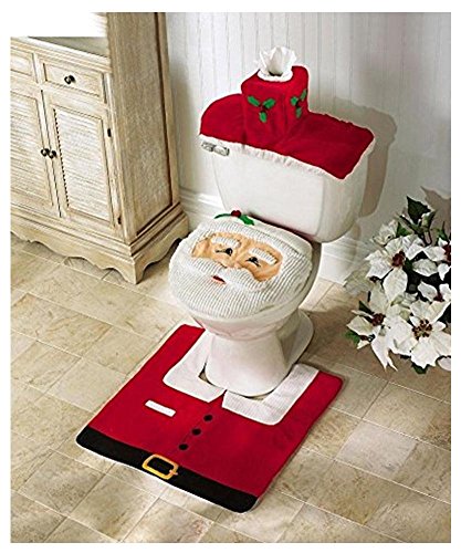 -. Brand : Minigift -. Color : 1 -. Department : womens -. Feature : Santa Commode Set: This 3-pc. commode set features toilet seat and tank covers plus a colorful contour rug with skid-resistant rubber back. / Machine wash. Imported. Rug measures 22" x 23". Tank Cover 24 3/4"L X 12 1/4"W. Seat Cover 23" X 20 1/2"W. / Seat and tank cover have elastic for a snug fit / Santa Toilet Seat Cover and Rug Set (Red) / Tank Cover also includes a tissue box cover -. IsAutographed : 0 -. IsMemorabilia : 0 -. Label : Minigift -. Manufacturer : Minigift -. ManufacturerPartsWarrantyDescription : Parts -. MPN : Compass Arts Imports -. PackageQuantity : 1 -. PartNumber : Compass Arts Imports -. ProductGroup : Apparel -. ProductTypeName : HOME_BED_AND_BATH -. Publisher : Minigift -. Studio : Minigift -. Title : Mini-Gift Santa Toilet Seat Cover and Rug Set Christmas Party Decoration (Red)