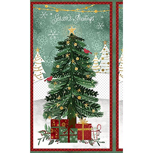 Frosted Holiday~Christmas Tree Panel 24" x 44" Cotton Fabric by Wilmington Prints