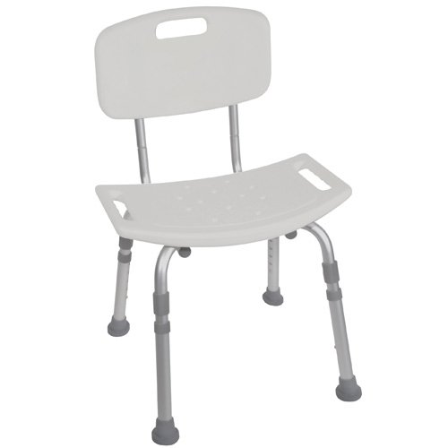 Studio : Drive Medical Publisher : Drive Medical Product Description Drive Medical Deluxe Knockdown Aluminum Bath Chair with Removable Back, 19-1/2" H x 19-1/4" W x 11-1/2" D Seat, Gray, 400 lb Weight Capacity, Latex-Free The bathroom safety shower chair is guaranteed to improve the bathing experience. The back, seat and legs snap together making assembly a cinch without tools. Manufactured with a corrosion proof durable aluminum frame which is strong and lightweight, this product provides maximum safety in the bathroom. The seat and back were developed using recycled materials and were ergonomically designed with curves to offer support and add comfort. The seat has holes to allow for drainage and handles in order to reduce the risk of slipping. The shower chair has angled legs with suction style tips providing extra stability. An additional feature of this chair is that the legs are height adjustable in order to meet your specific needs. This chair is in an attractive grey and comes with a backrest. 0
