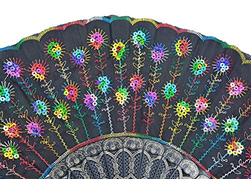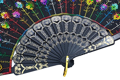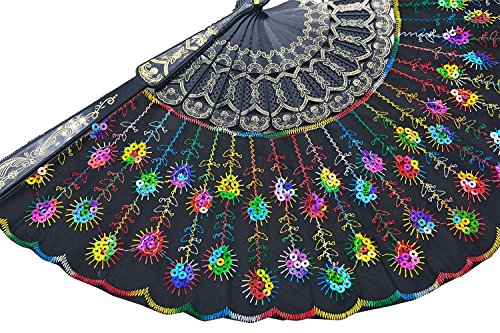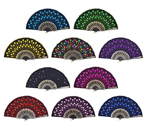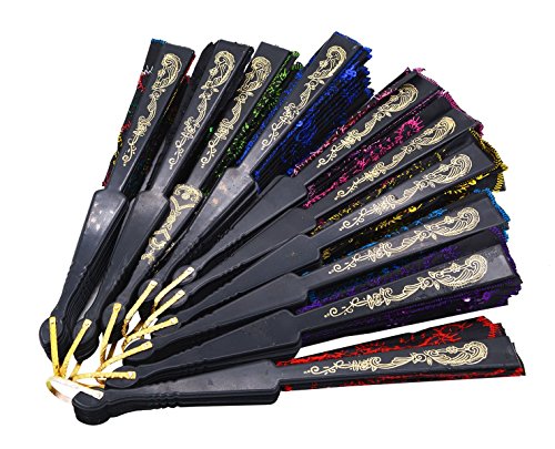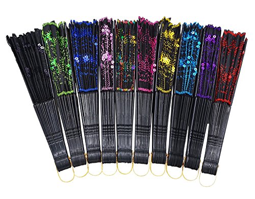 GZZOU Chinese style Classical Allusion Folding Fans,9"(23cm) Women Sequins Embroidery Silk Fan Dance Fan Handhelp Fan Dance Fans Plastic Sequins Fan Wedding Fan 10PCS (Multicolor)