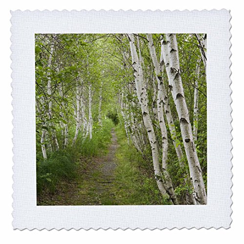 3dRose qs_90692_4 Paper birch trees, Path, Acadia NP, Maine - US20 JMO0986 - Jerry and Marcy Monkman - Quilt Square, 12 by 12-Inch