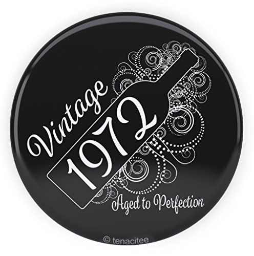 Binding : Apparel Product Description Born in 1972 - Aged Like a Fine Wine 2.25" Button by Tenacitee. Express yourself! Buttons are the perfect way to let the world know how you feel. Our buttons are designed, printed, and handmade at Tenacitee's studio in Oklahoma. Proudly made here in the USA! This 2.25" button has a metal shell with pinback and mylar cover to protect from scratches. Perfect to decorate your shirt, jacket, bag, or put anywhere else you want! It's a great gift or giveaway for parties. 0