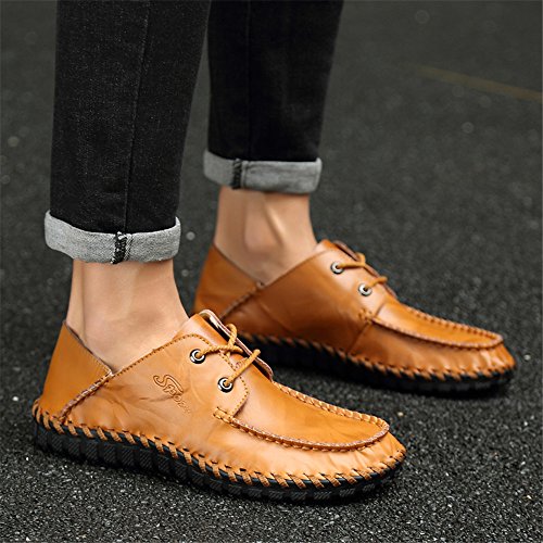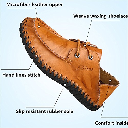 (Fires)/Men's/Loafers Slip-Ons/DIRECT FROM USA/Fires Men's Microfiber Leather Lace Up Oxfords Handmade British Style Retro Flats Walking Casua...