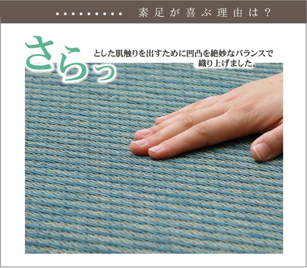 【商品名】 い草花ござ カーペット 『DXクルー』 ブルー 江戸間8畳(約348×352cm) (裏:不織布) 抗菌、防臭効果 【ジャンル・特徴】 自然素材のいぐさラグマット イ草 イグサ 冷感 ひんやりマット ■サイズ・色違い・関連商品■江戸間4.5畳 261×261cm ブルー■江戸間4.5畳 261×261cm グリーン■本間4.5畳 286.5×286cm ブルー■江戸間6畳 261×352cm ブルー■江戸間6畳 261×352cm グリーン■本間6畳 286.5×382cm ブルー■本間6畳 286.5×382cm グリーン■江戸間8畳 348×352cm ブルー[当ページ]■江戸間8畳 348×352cm グリーン■本間8畳 382×382cm ブルー■本間8畳 382×382cm グリーン関連商品の検索結果一覧はこちら 凹凸感を織り方で出したシンプルなデザインに仕上げたい草カーペットです。い草には1.空気の自然浄化作用、湿度の調節作用などがあります。また汚れにくく、使用するうちに黄金色に変化し、味が出ます。い草に青森ヒバ加工を施しています。(抗菌・防臭効果)フローリン