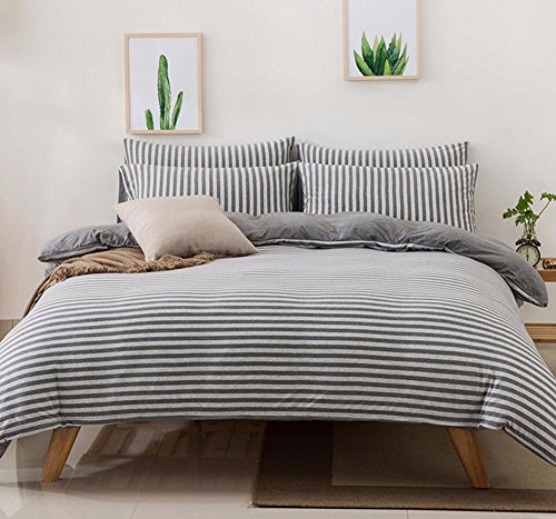 Binding : Kitchen Product Description MisDress 3 Pcs Jersey Cotton Comforter Cover Set Stripe Pattern(1 Duvet Cover,2 Pillow Shams) Bedding Set-BreathableLightweight