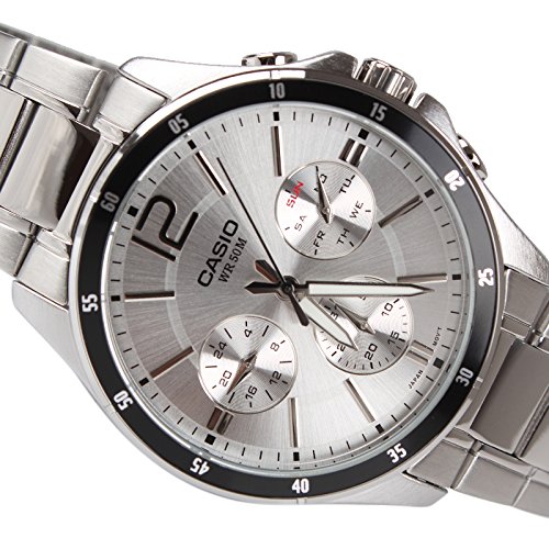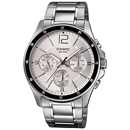 -. Title : Casio #MTP1374D-7AV Men's Standard Metal Band Multi-Function Silver Dial Watch
