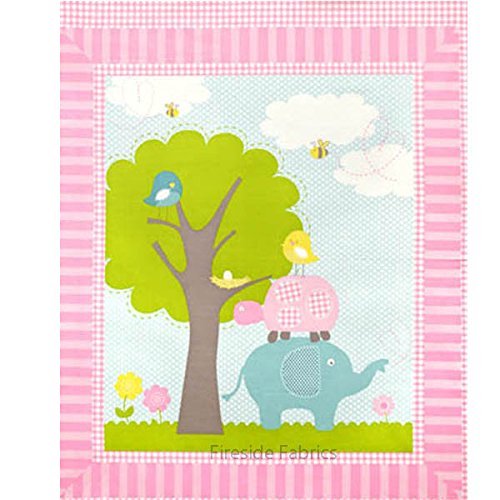 "Sweet Meadow Panel" Baby Elephant & Turtle Cheater Quilt Cotton Panel (Great for Quilting, Sewing, Craft Projects, a Child's Quilt, Throw Pillows & More) 35" x 44"