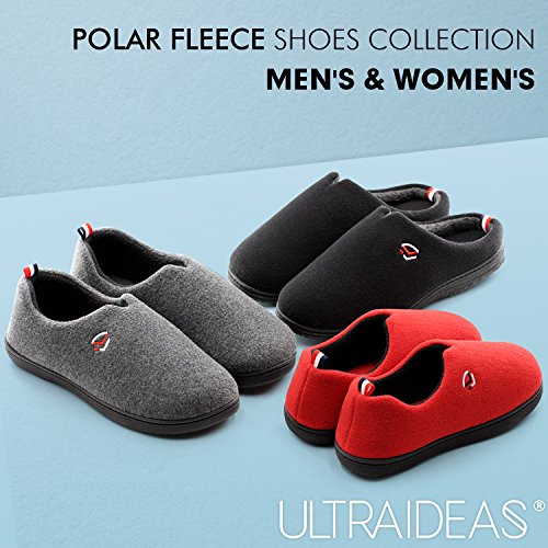 -. Feature : ULTIMATE COMFORT FEELING: These ULTRAIDEAS slippers are the perfect shoes for the people of all ages. You will feel like you are walking on a cloud with these comfort polar fleece lining and sophisticated weaving slippers. After a long day, slip these on and fall into relaxation that lasts the whole evening through. / HIGH QUALITY & WELL-MADE: These slippers are made of high-quality and superior cotton texture. The high density foam and polar fleece insole makes these slippers flexible so they will conform to your feet and retain their shape. Every environment friendly and waterproof TR rubber sole offers you an anti-slip protection. They are really perfect for indoor and outdoor use. / GOOD HYGROSCOPICITY & PERMEABILITY: These slippers aren't just for bedtime--feel free to wear them both indoors and out! The excellent and soft polar fleece material also absorbs the sweat from your feet quickly after a long day walking. They could be perfect for all seasons, especially for autumn and winter. / MULTIPLE OPTIONS & EASY MAINTENANCE: ★Style: Easy to Slip on. ★Available in sizes Small, Medium, Large, X-Large for Men. ★Available in your choice of Black & Grey. These slippers also fit for women to buy one size down. They are both hand and machine washable. / SATISFACTION GUARANTEE: With ULTRAIDEAS, you're taking no risk with your purchase. We offer 100% no risk money-back guarantee if you're not thrilled with your purchase for any reason. Just tell us and we will do our best to give you the most satisfactory solution. Please check our ULTRAIDEAS storefront for more slipper styles and other deals that are waiting for you!