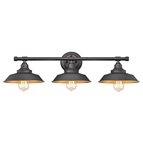 Westinghouse 6344900 Iron Hill Three-Light Indoor Wall Fixture, Oil Rubbed Bronze Finish with Highlights Industrial Iron Hill Three-Light Indoor Wall Fixture, Oil Rubbed Bronze Finish with Highlights