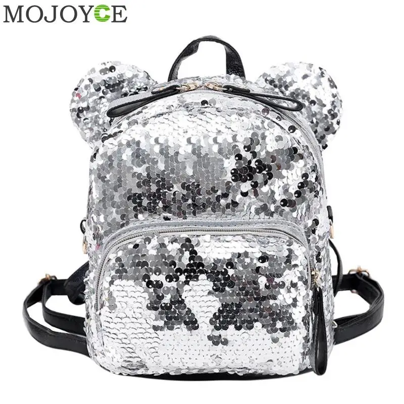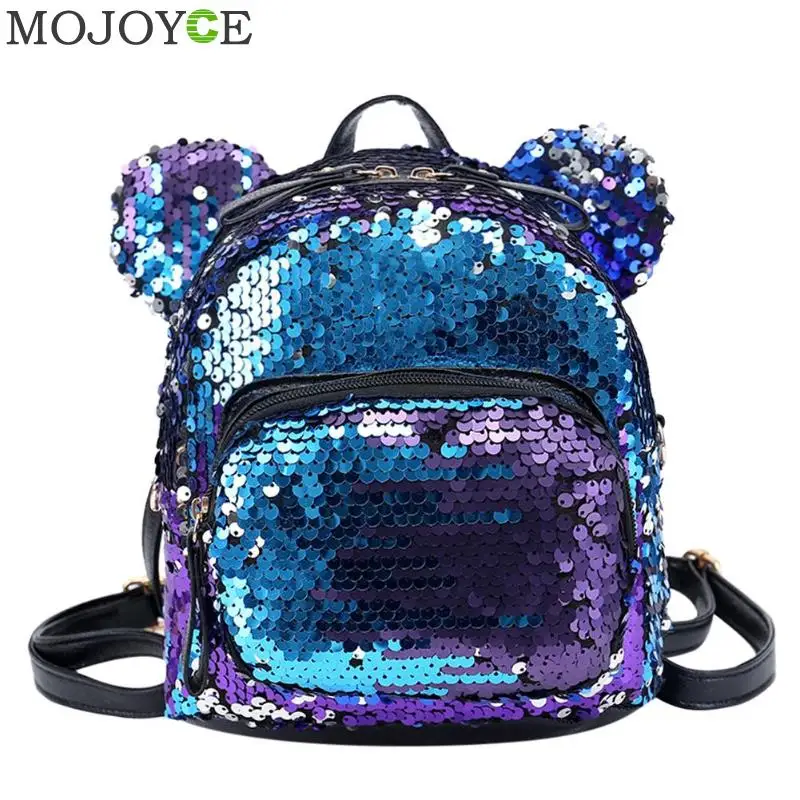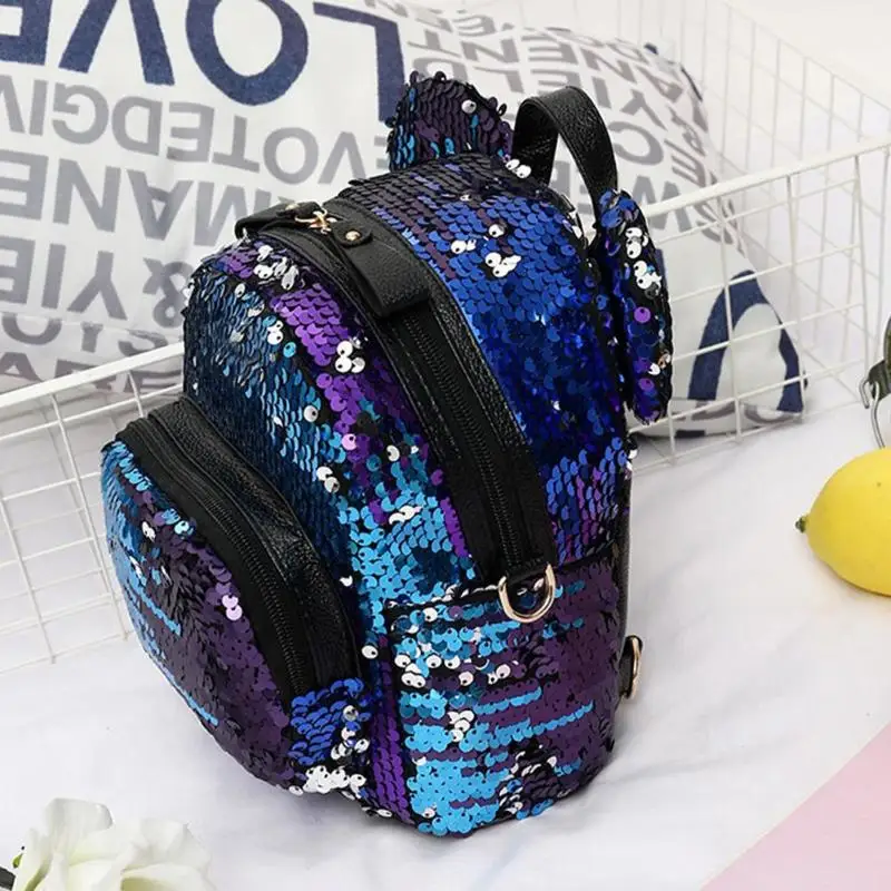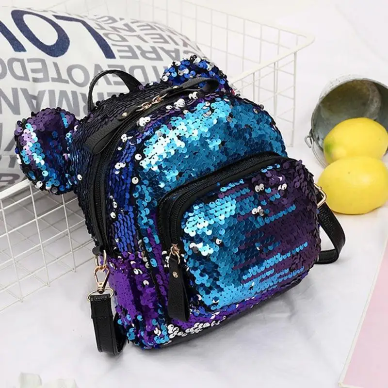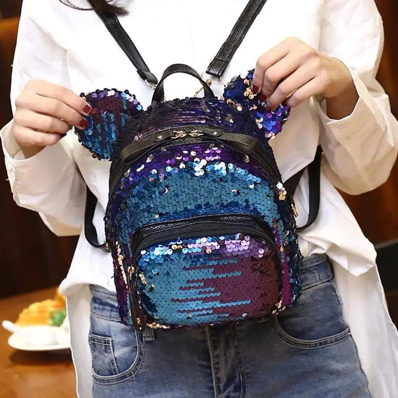 Shining Women Sequins Backpack Bear Ear Teenage Girls Travel Party Mini Shoulder School Bags Features: The fashion version of the type:concise but not simple, high-grade Sequins material,extraordinary quality; Exquisite design: generous, simple fashion; Easy to carry: Breakthrough cumbersome,Handy convenient. Specifications: Material: Sequins Size: 25 X 20 X 10cm/9.84 X 7.87 X 3.94" Purpose: Backpack Style: As shown Color: Blue,silver,pink Notes: 1. Due to the different monitor and light effect, the actual color of the item might be slightly different from the color showed on the pictures. Thank you! 2. Please allow 1-3cm measuring deviation due to manual measurement. 1 X Backpack |
