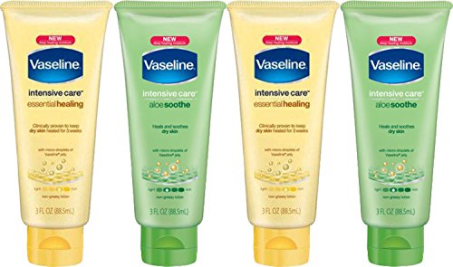 Vaseline Intensive Care Aloe Soothe and Essential Healing Lotion, 3 Ounces, 2 of Each