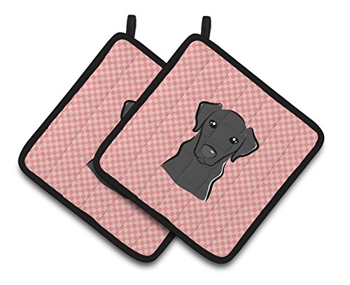 Caroline's Treasures Checkerboard Pink black Labrador Pair of Pot Holders BB1235PTHD, 7.5HX7.5W, Multicolor