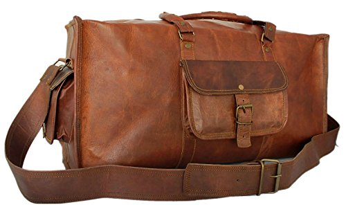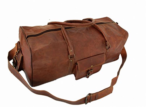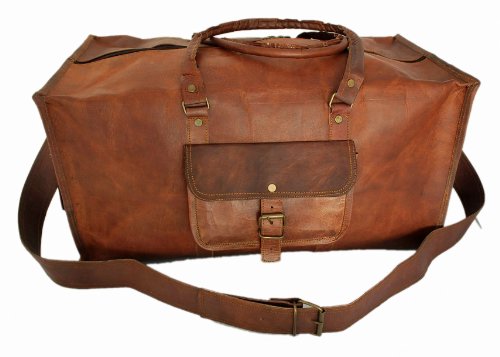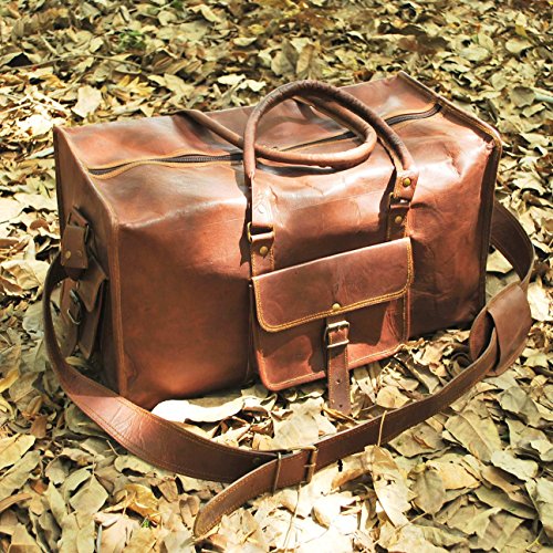 -. Feature : All-Round Vintage Leather Travel Bag: Weekend Getaway Bag, Sport Bag, Holiday Bag / Dimensions in inches :22 (Length), 10 (Width), 10 (Depth) / Strong & Durable: Brass Fittings & Buc`kles, YKK Zippers, Sturdy Green Canvas Lining, Supple leather / Handmade by Indian Artisans using Natural Goat Hide / Rustic Town is connected with a number of Organizations within India which work to bring employment to artisans and keep alive traditional skills.