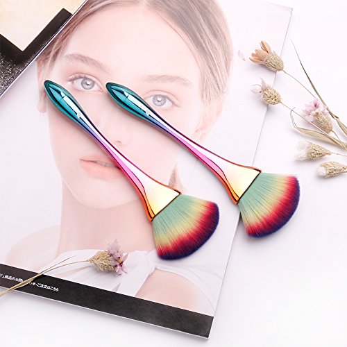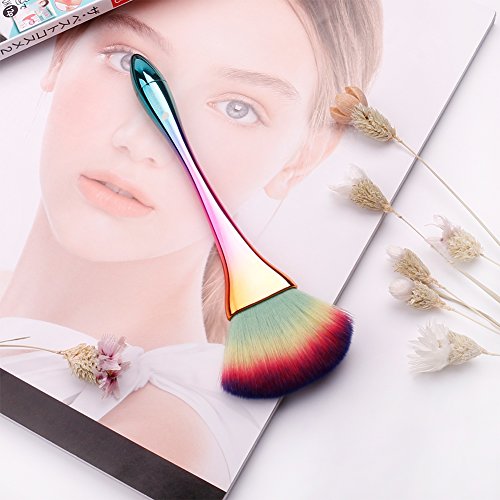 - The colorful fan powder makeup brush with large, fluffy and dense head,perfect for applying and setting face makeup base with full coverage of powders, minerals as well as a flawless finish